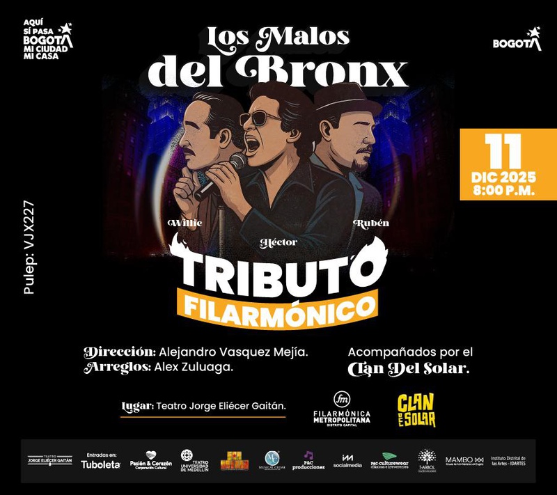 El próximo 11 de Diciembre, el Teatro Jorge Eliecer Gaitán será el escenario de una noche inolvidable con “Los Malos del Bronx”, un majestuoso tributo filarmónico a tres íconos inmortales de la salsa: Willie, Rubén y Héctor .